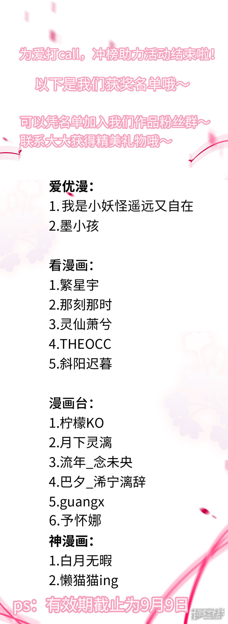 為愛(ài)打CALL獲獎(jiǎng)名單