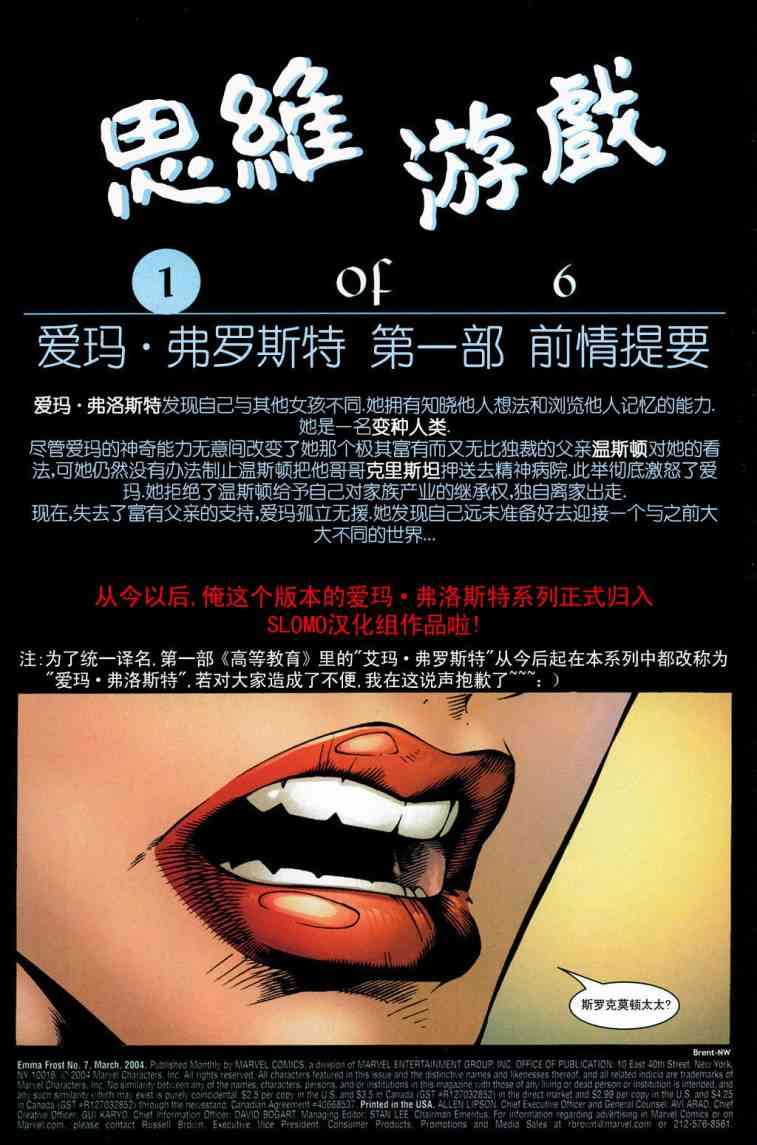 《愛瑪·弗洛斯特 思維游戲》目錄