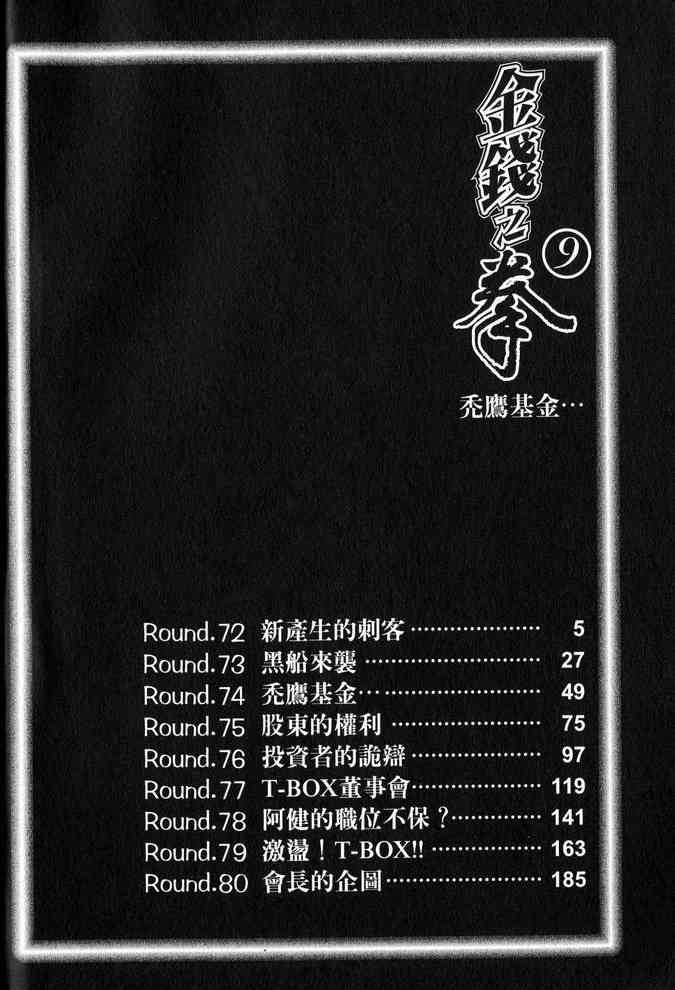 《金錢之拳》目錄