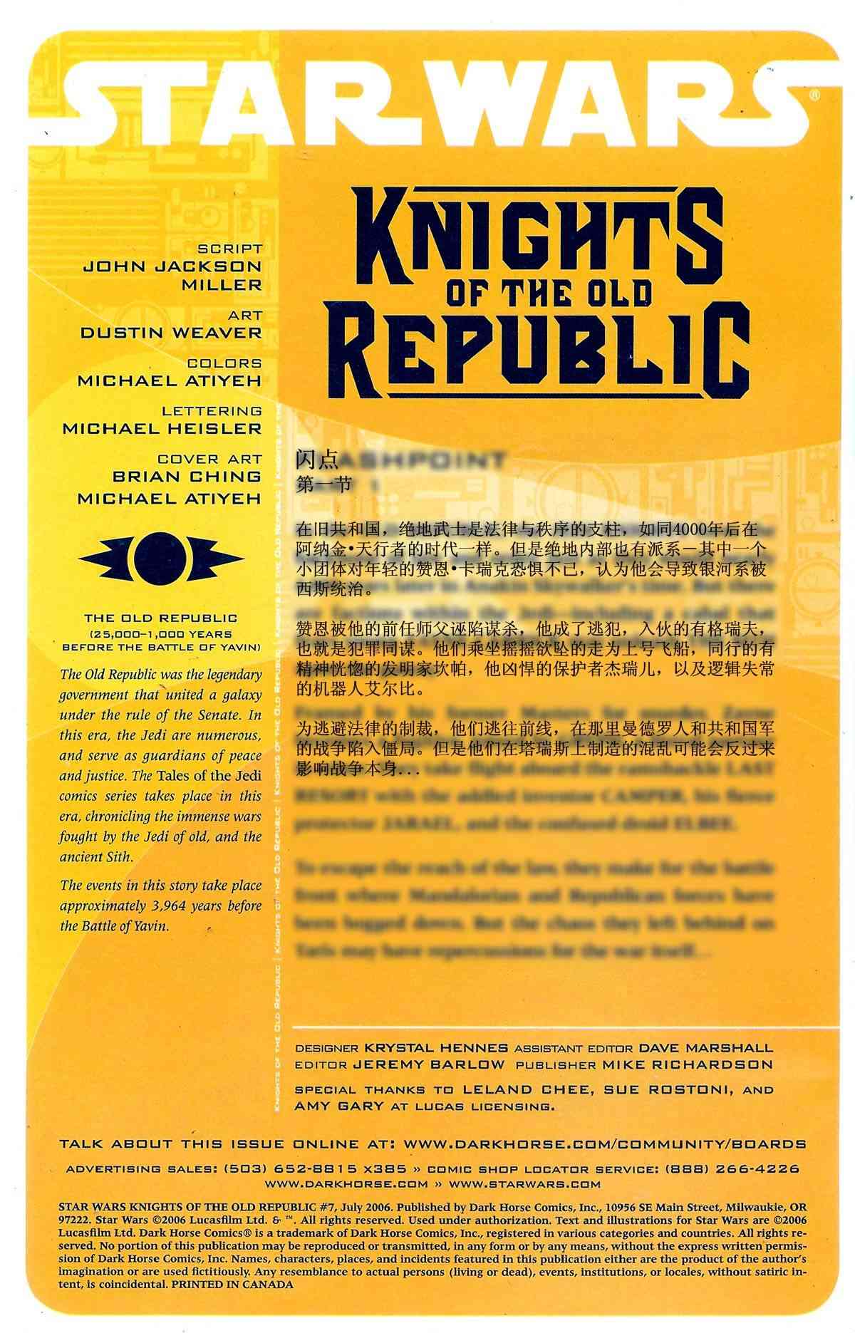 《星球大戰(zhàn)舊共和國武士》目錄