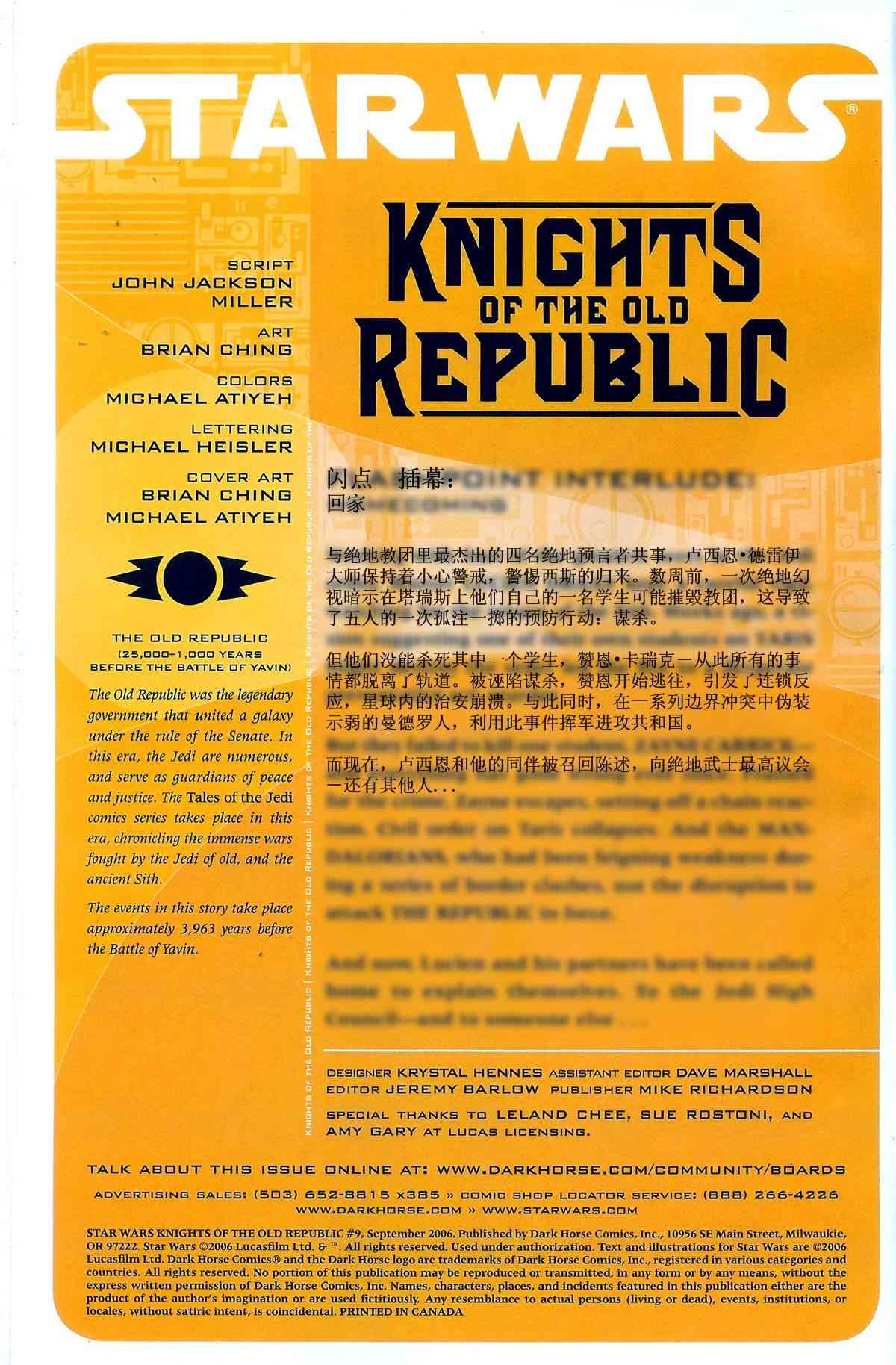 《星球大戰(zhàn)舊共和國(guó)武士》目錄