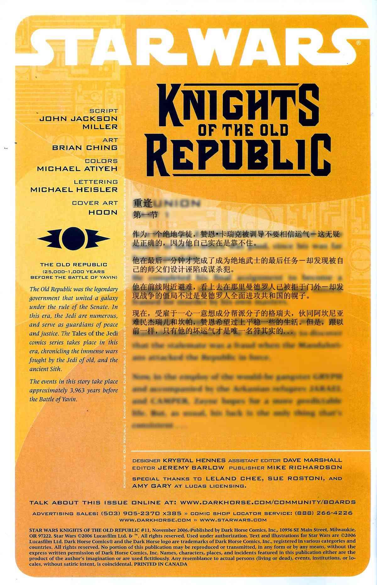 《星球大戰(zhàn)舊共和國武士》目錄