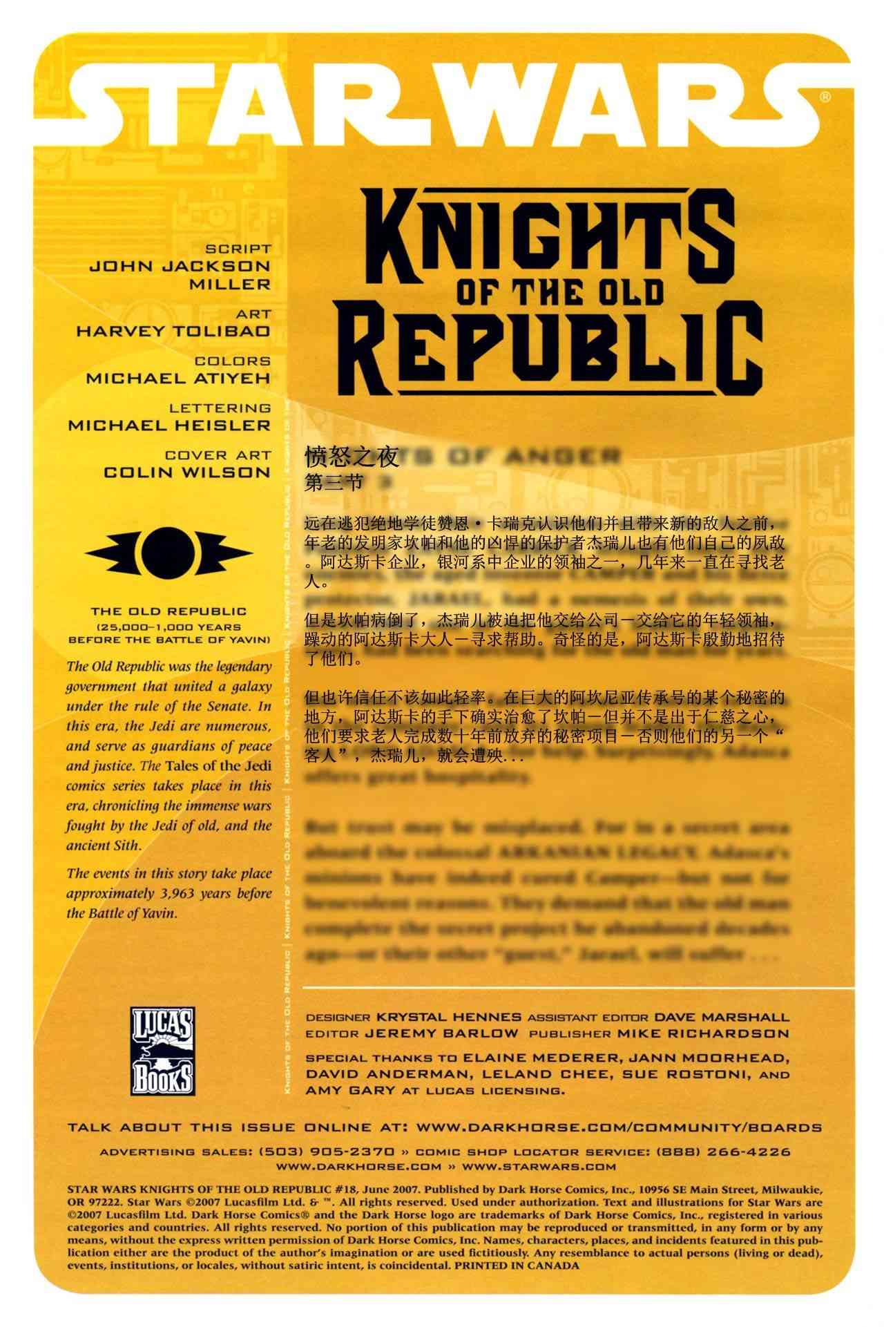 《星球大戰(zhàn)舊共和國武士》目錄