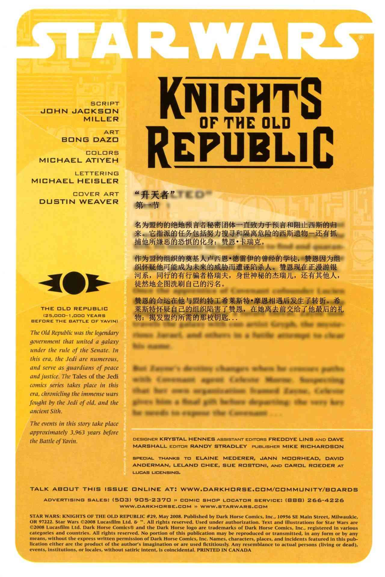 《星球大戰(zhàn)舊共和國武士》目錄