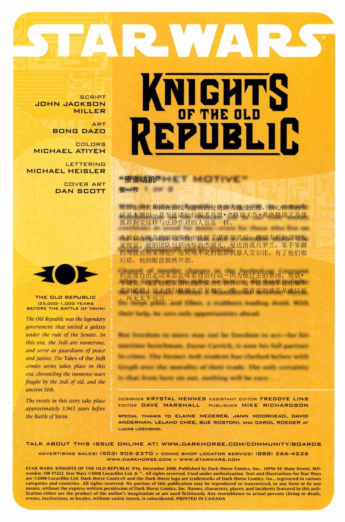 《星球大戰(zhàn)舊共和國武士》目錄