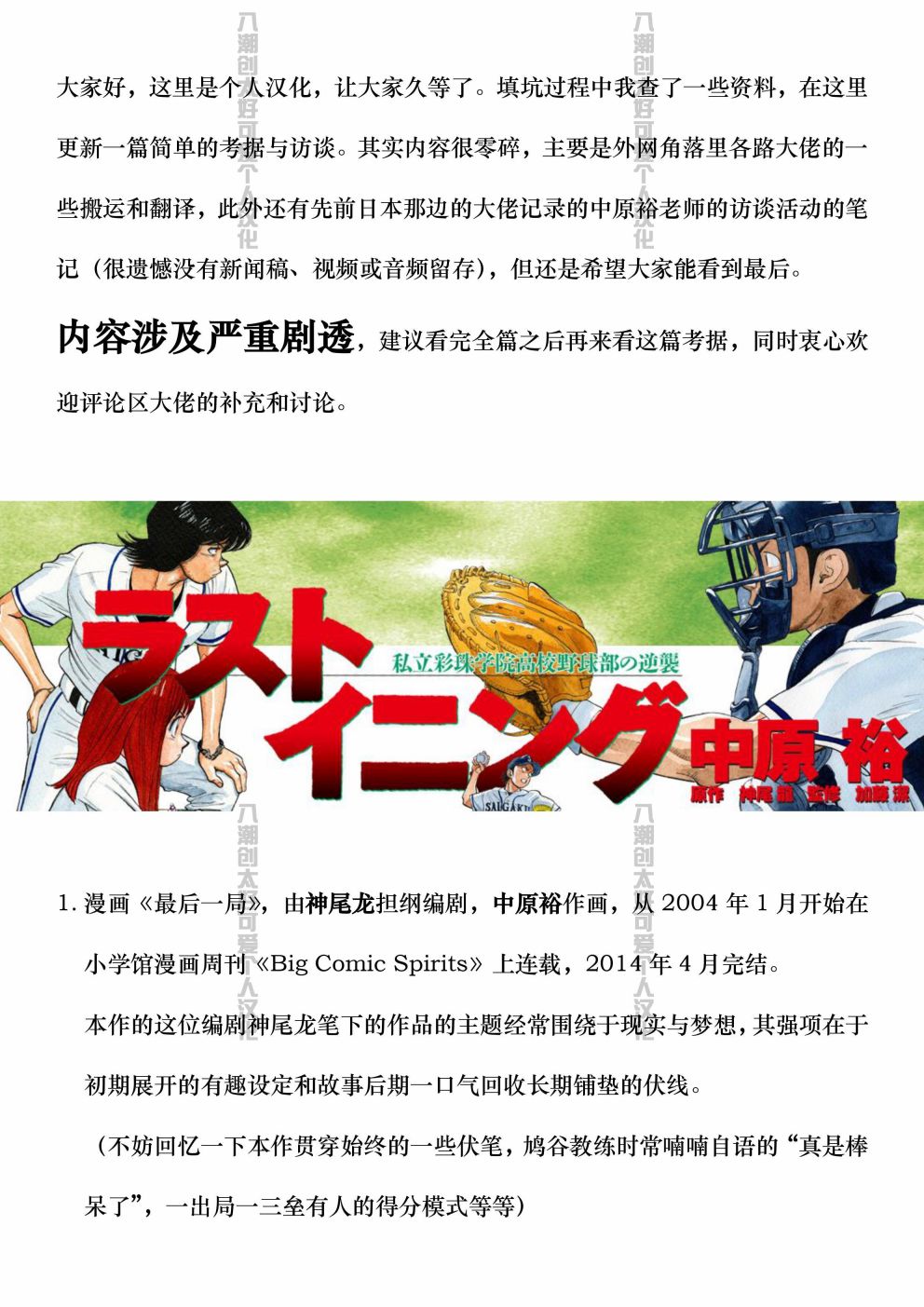 《最后一局》目錄
