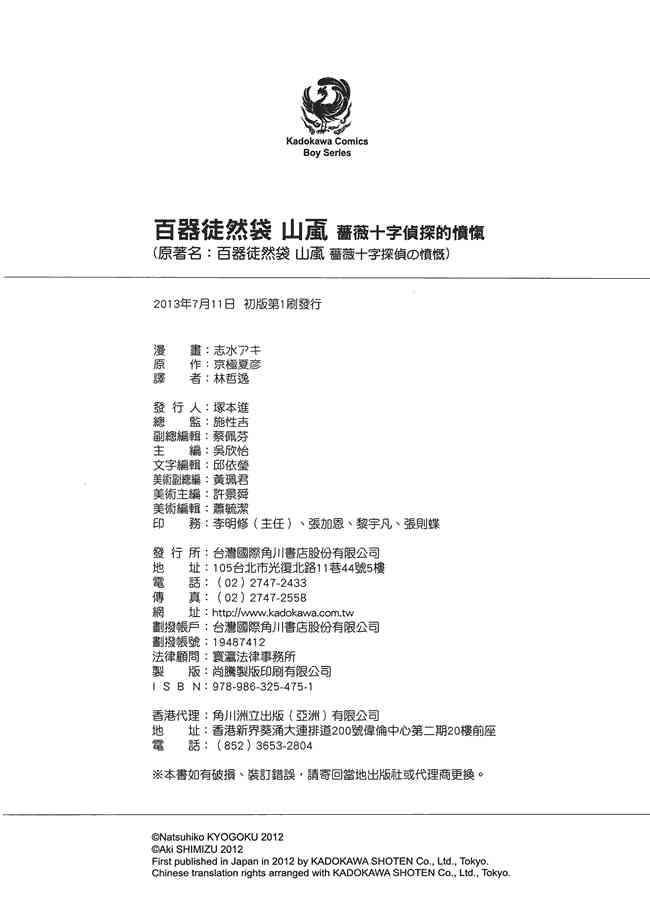 《百器徒然袋山颪薔薇十字偵探的憤愾》目錄