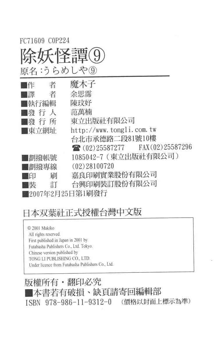 《除妖怪譚》目錄