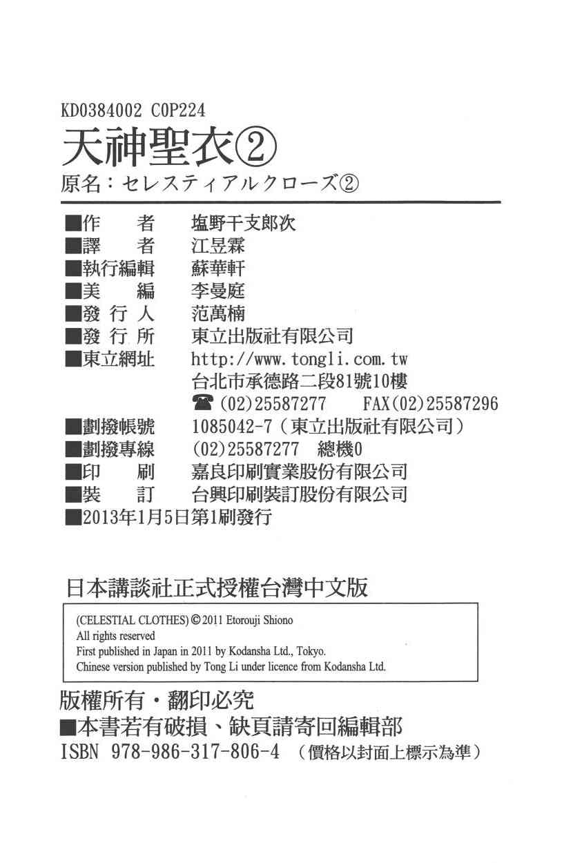《天神圣衣》目錄