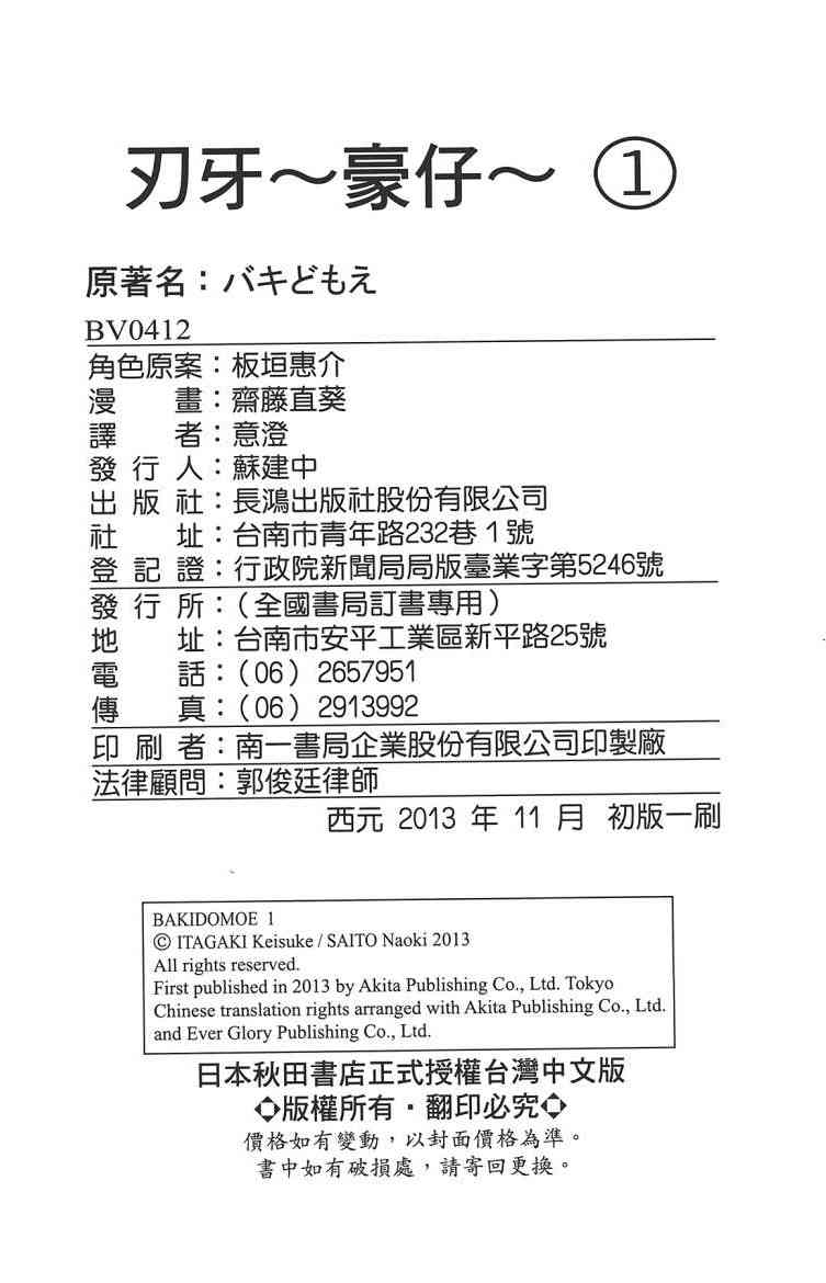 《刃牙 豪仔》目錄
