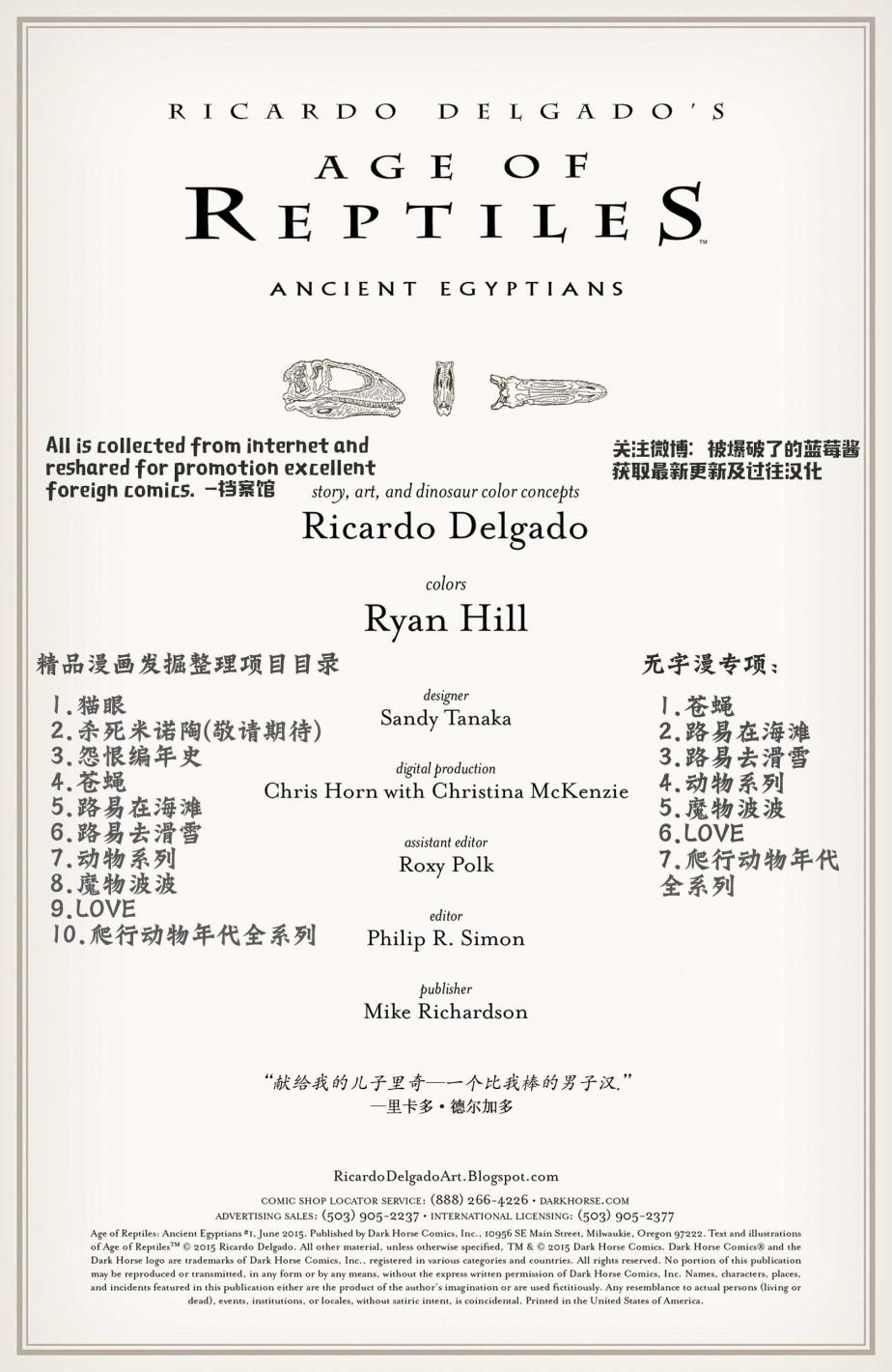 《爬行動物年代》目錄