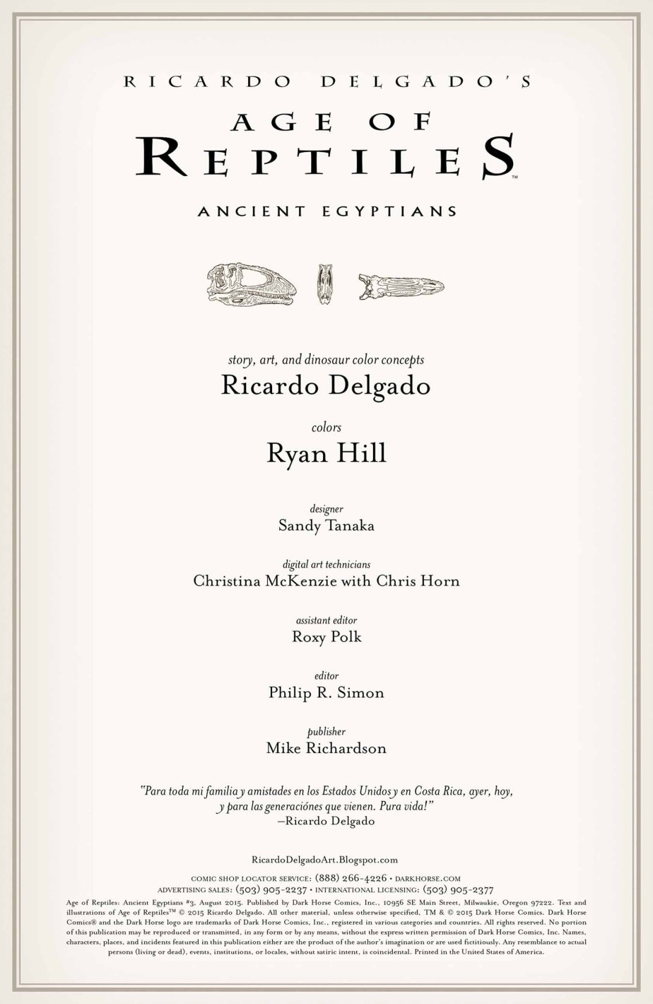 《爬行動物年代》目錄