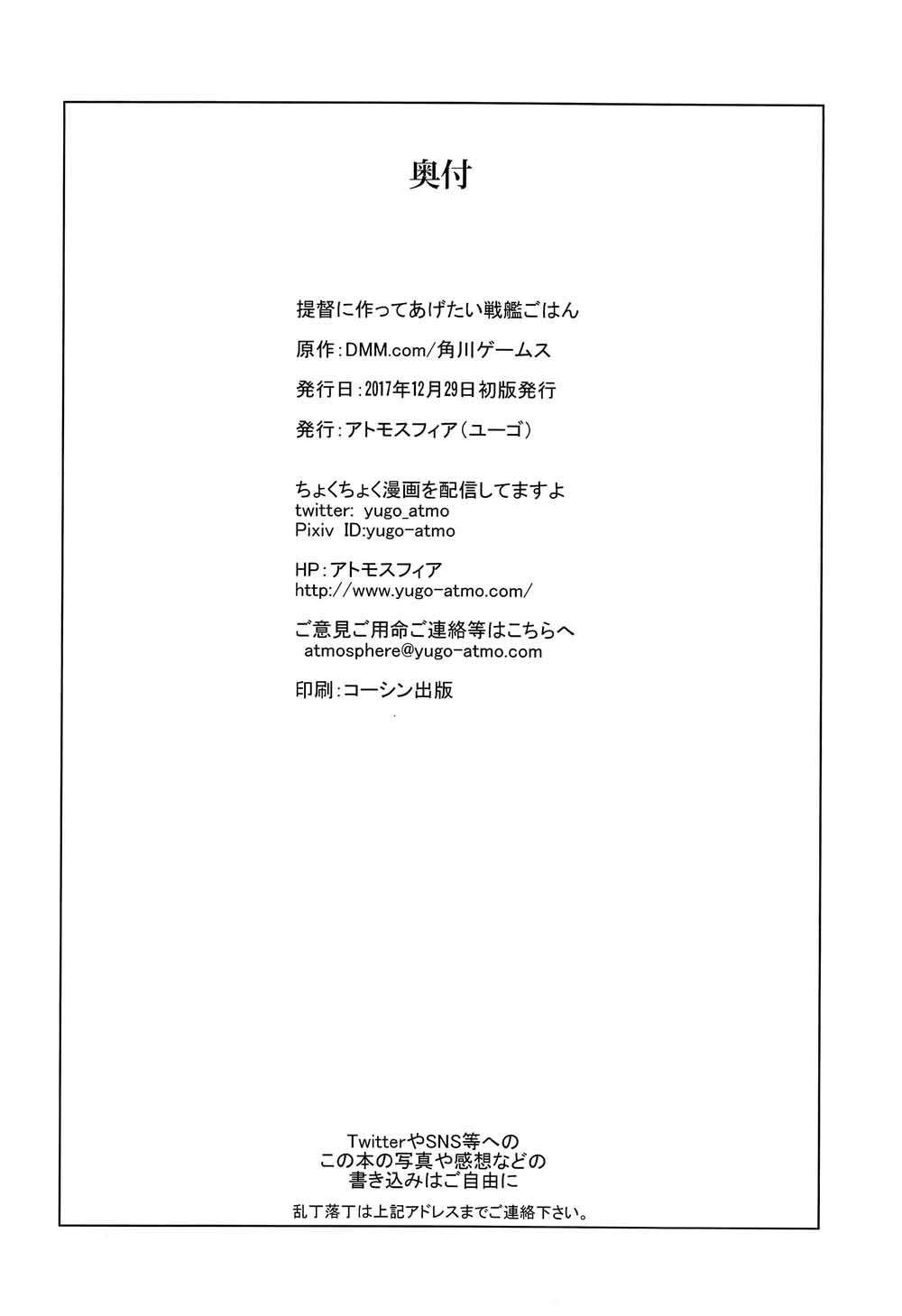《為提督制作的戰(zhàn)艦餐》目錄