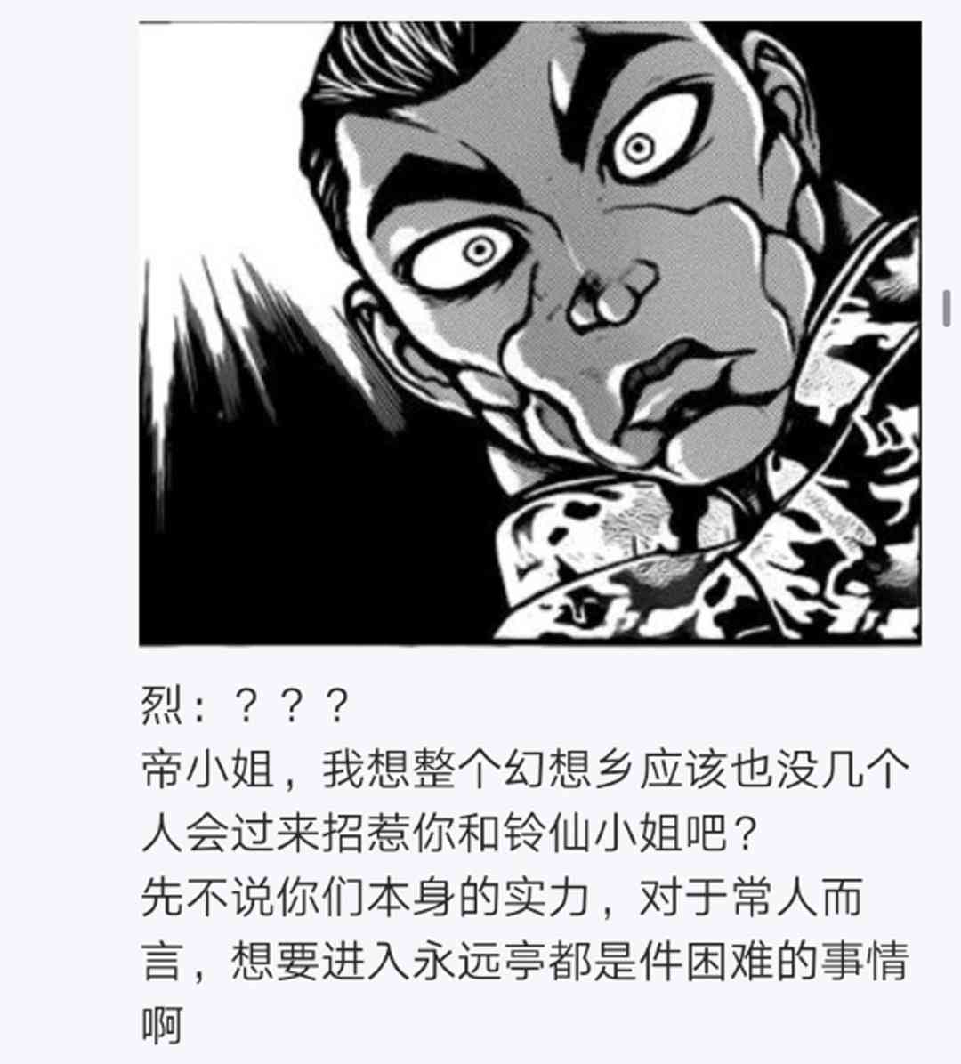 烈海王似乎打算在幻想鄉(xiāng)挑戰(zhàn)強(qiáng)者們的樣子