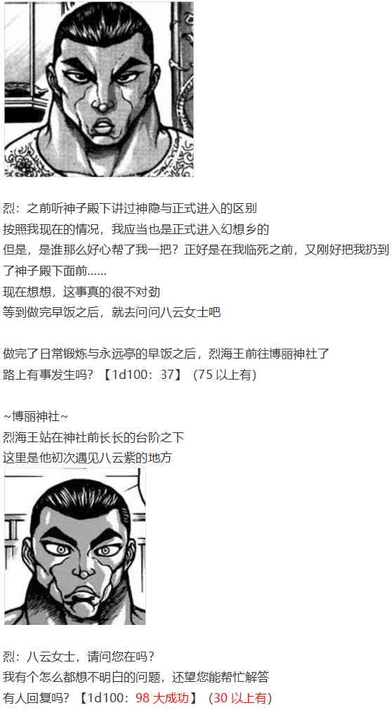 烈海王似乎打算在幻想鄉(xiāng)挑戰(zhàn)強(qiáng)者們的樣子