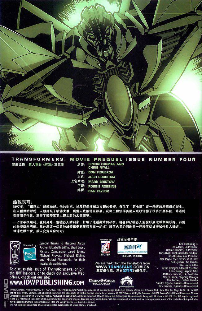 《變形金剛真人電影前篇》目錄