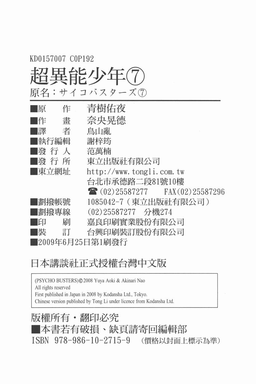 《超異能力少年》目錄