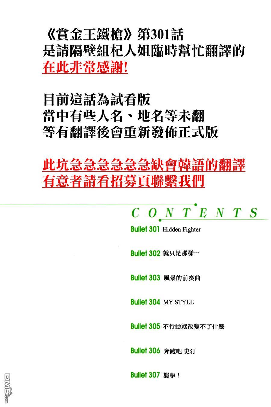 《賞金王鐵槍》目錄