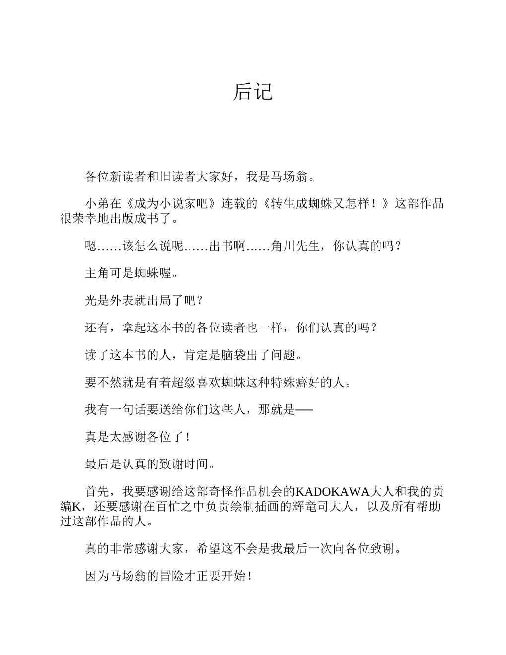 《不過是蜘蛛什么的-輕小說》目錄