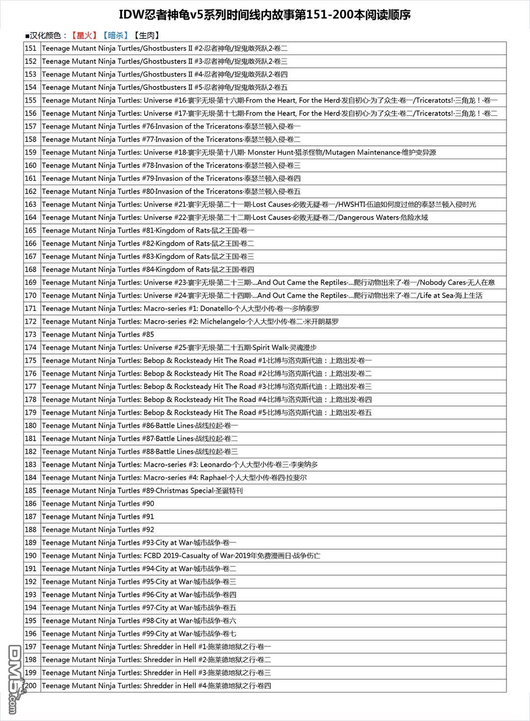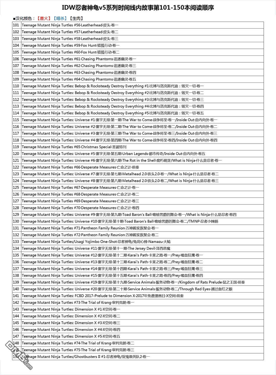 《忍者神龜》目錄