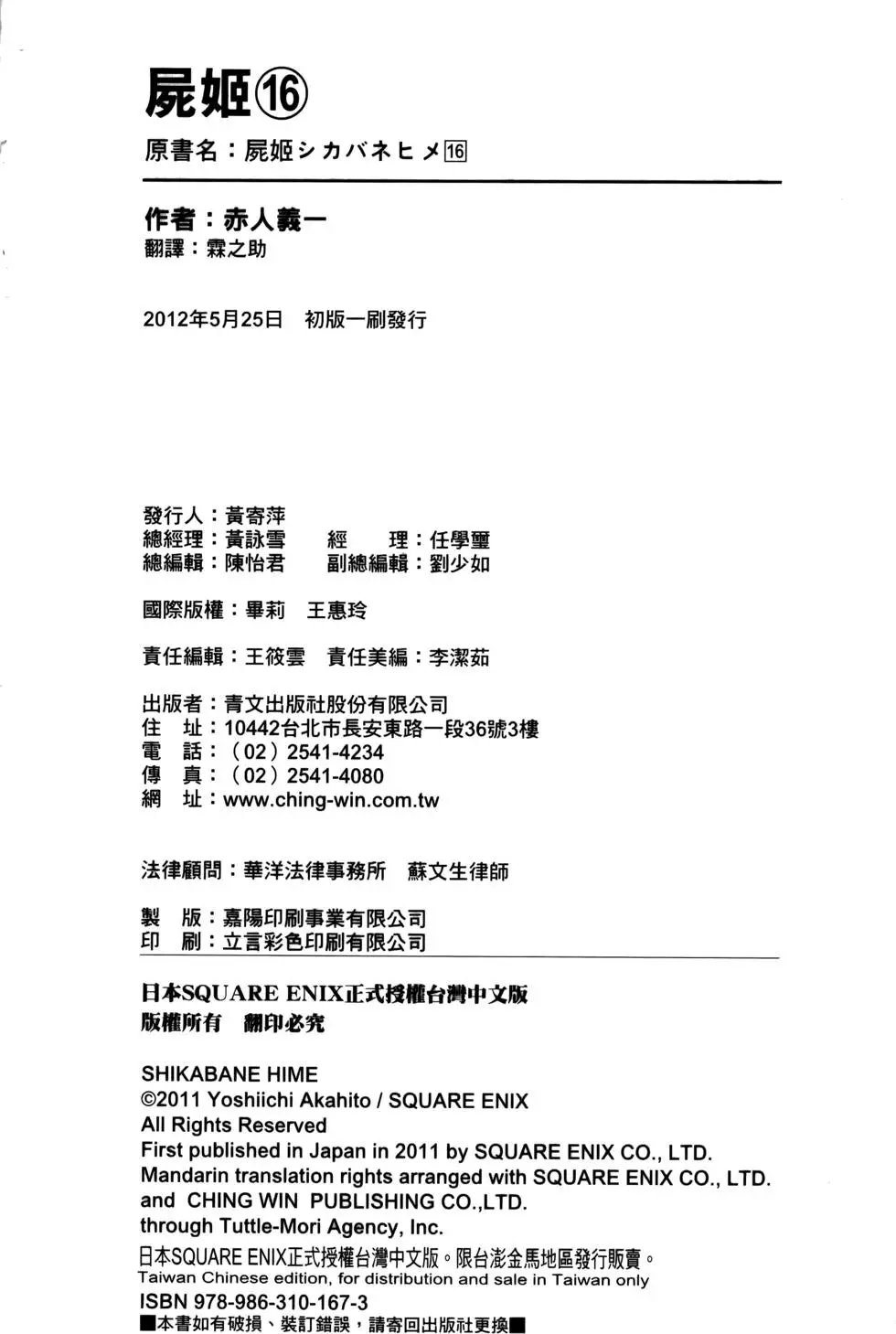 《尸姬》目錄