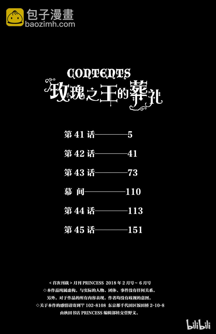 《玫瑰之王的葬禮》目錄