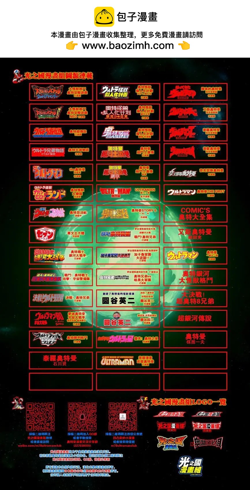 《奧特怪獸擬人化計劃fPOP》目錄