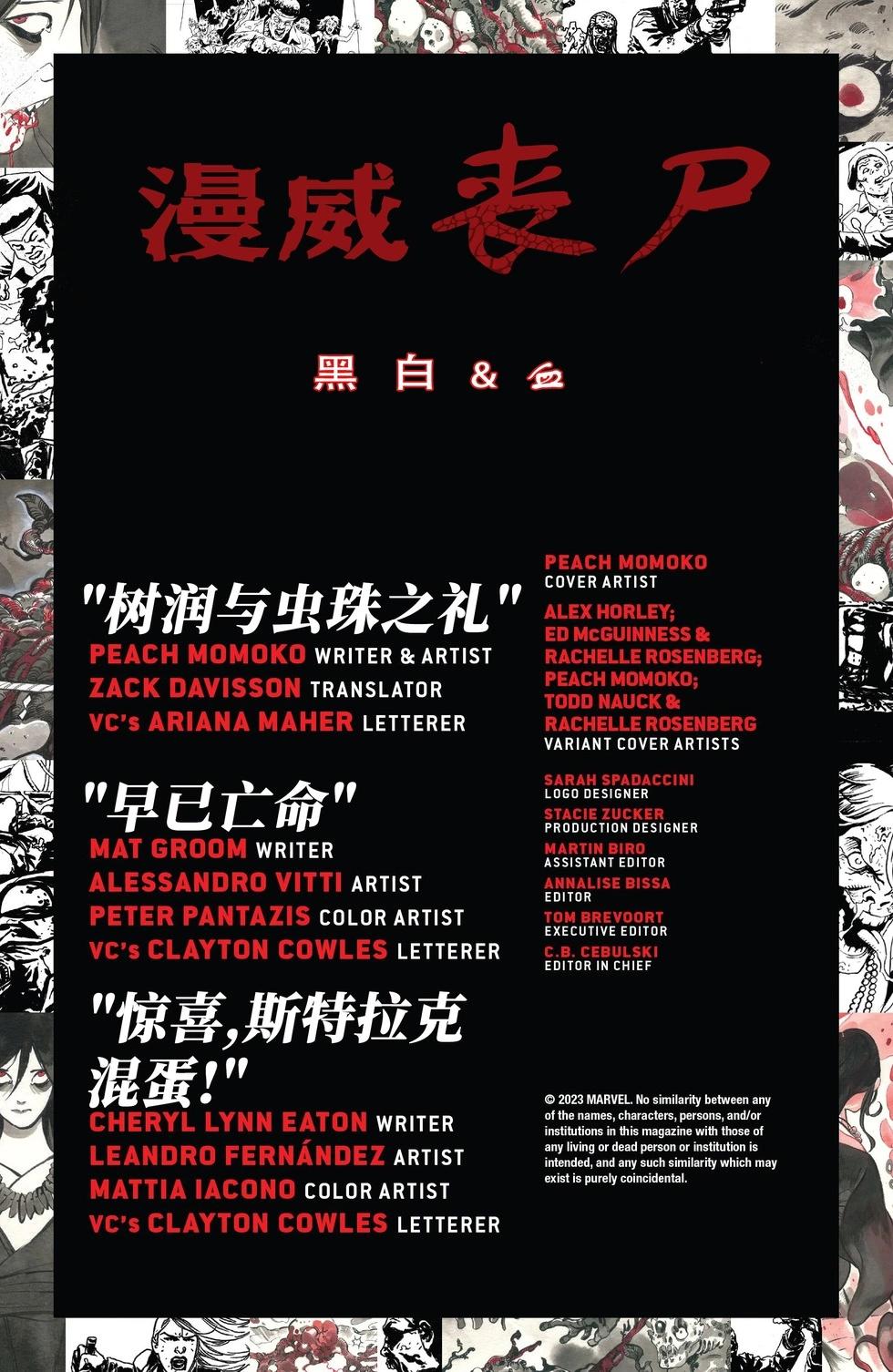 《漫威喪尸黑白與血》目錄